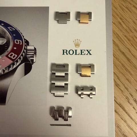 En diver-extension med spring bar samt 2stk løse led til Rolex 1680 eller Tudor 9411/0 samt lænker tilsvarende disse, typisk en 93150 lænke (nyere replacement). Alle dele er originale.