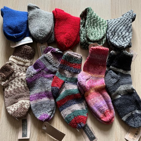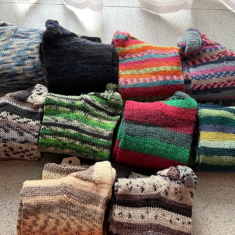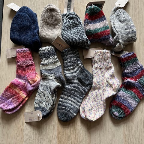 Hjemmestrikkede strømper.