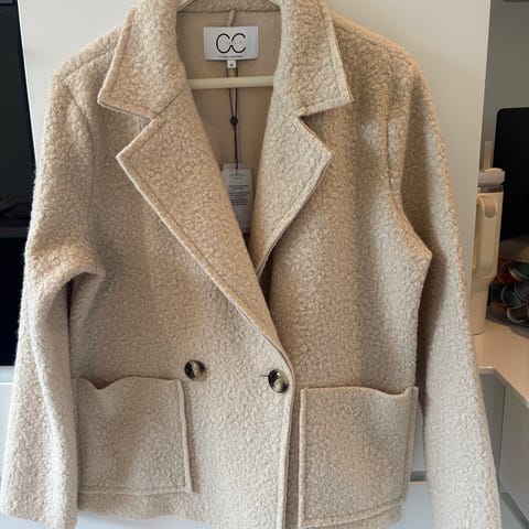 Coster Copenhagen Andre jakker damejakke i beige farve, størrelse 36. Jakken er lavet af polyester og har en klassisk pasform med knaplukning foran. Velegnet til hverdagsbrug og kan kombineres med forskellige outfits.