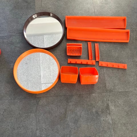 Vintage WC papirholder og barometer af messing og træ. Læs beskrivelsen.
