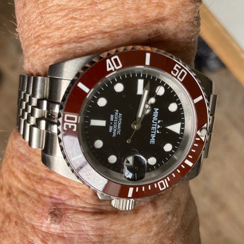Nethuns dykkerur , scuba dive med sort gummirem og med lækker træboks , stand 9/10