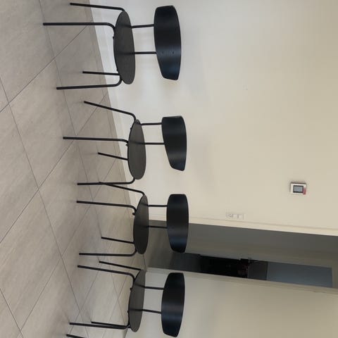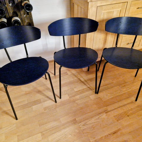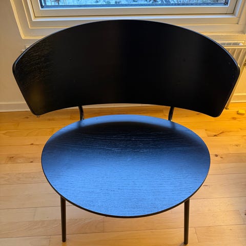 Originale sorte metalben + formspændt egetræssæde (farvet).