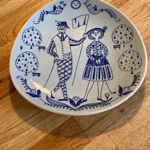 Stavangerflint tallerken/platte, i fajance med motiv af vikingskib. Designet af Kari Nyquist. Platten er intakt og i flot stand.