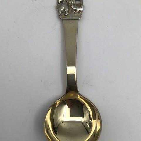 H.C. Andersen Eventyr Barneske i Sølv. Den Standhaftige Tinsoldat Måler 14.5 cm (5.70 inch) Rund Laf, Forgyldt