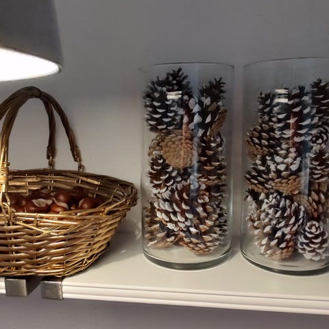 Flotte glas grankogler. Håndlavet med perlerne på. Fejler intet. 40 kr pr stk. En æske 120 kr . 2 æsker haves.