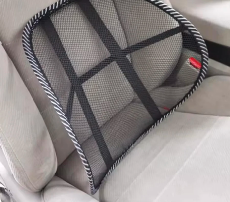 Nypris 995. Fremstillet af åndbart materiale med justerbar fastgørelse. Designet til at give støtte til ryggen ved siddende arbejde. Eller i lænestolen.