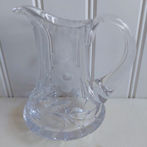Stor håndslebet krystal kande med Queen lace slibninger - detaljer i annoncen