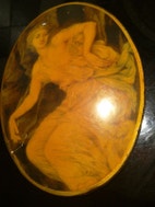 Andre samleobjekter, Æske med låg, med kvinde motiv. Ældre og dermed lidt patina.