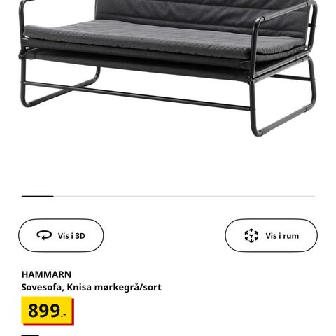 Mørk grå sovesofa. 1 meter lang når den ikke er slået ud. Udslået 2 meter.