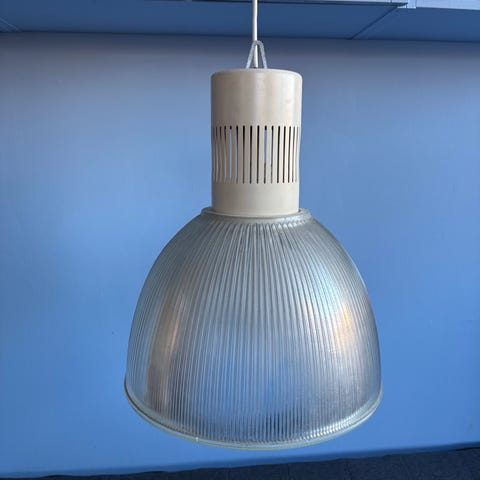 Halogen lampe i metal og sort ledning. Lampen har et minimalistisk design og kan justeres i højden. Velegnet til ophæng i stuer. Skærm Ø 14x6 cm. høj. 12 v. max. 50 w. Pæn og velholdt. Sendes ikke