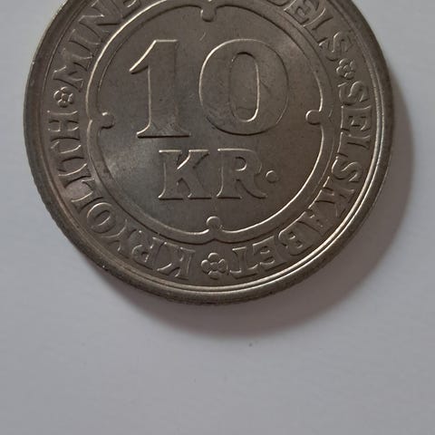 KØBES: Den sjældne grønlandske Kryolith 10 kr i gul aluminiumsbronze købes. Skal være uden skrammer, kanthakker og andre defekter. Skal ikke være i højeste kvalitet, kv. 1+-01 er fint