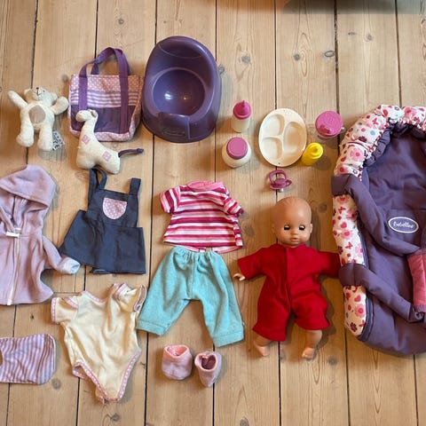 Bebellino dukke iført lyserødt tøj. Dukken er designet til børn og har bevægelige led for leg og interaktion.