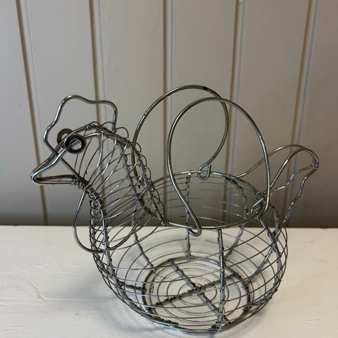 Gammel æggekurv i metal og træ