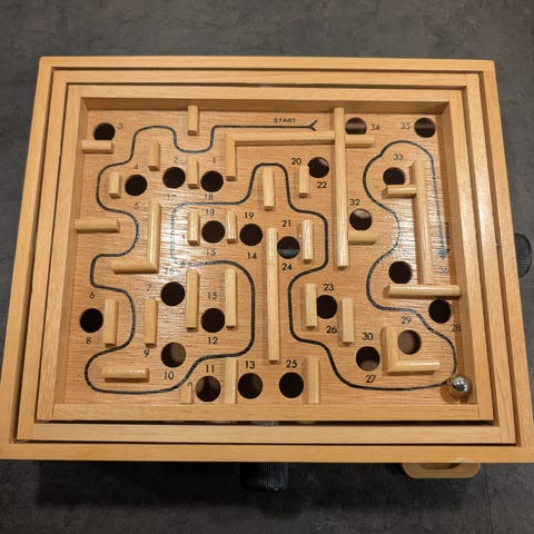 Træ Magnetisk Labyrint Spil med Farvede Kugler og Pincet
