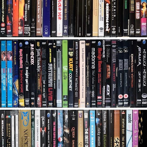 Diverse Musik-DVD Samling med blandede kunstnere. Indeholder koncerter og musikvideoer fra kunstnere som Yes, Cream, Michael Jackson, Bruce Springsteen, Guns N' Roses, Whitney Houston og mange flere.