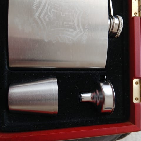 Rustfrit stabelbar drikkenes med læderitui
