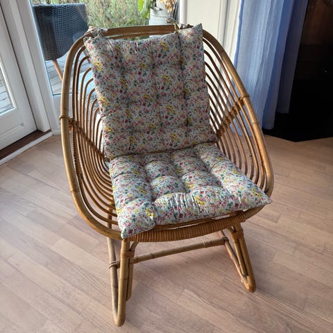 Desværre er der lidt skader i flettet men ellers sidder man fint i den.