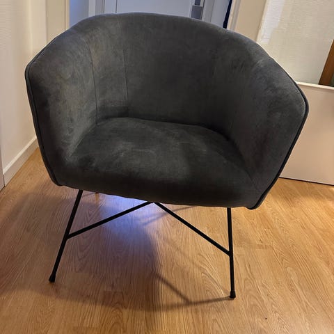 Wahson lænestol, grå, sorte metalben. Fremstå som ny.
