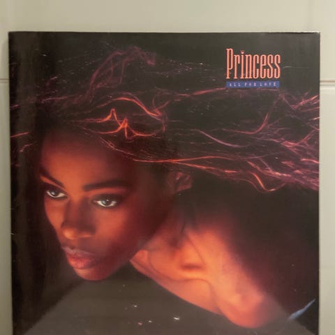 Princess vinylplade med cover, viser et portræt af en kvinde med krøllet hår og perlekæde. Indeholder flere musiknumre, produceret af Stock Aitken Waterman.