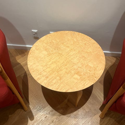 Side/sofabord som passer til jetson stolene, er pænt bortset fra lille 3 cm ridse i midten af glaspladen, (er så lille at det ikke kunne lykkedes mig at tage et billede af den)