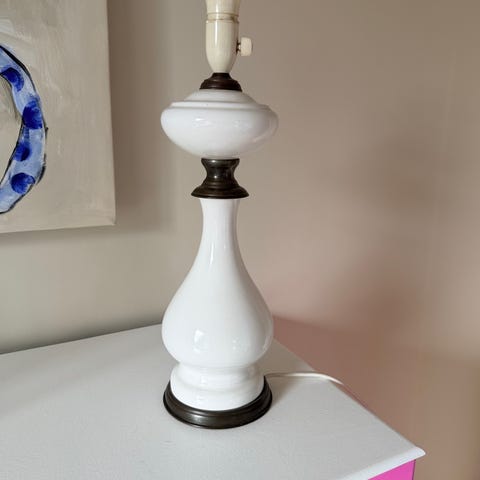 Porcelæns bordlampe fra 60'erne med messing detaljer