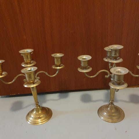 lyseholder med 4 arme i messing. Produktet er håndlavet med variationer i overfladen, hvilket gør hver lyseholder unik. Designet har en patineret finish, der giver et naturligt udseende med enkelte mørke pletter og små ridser. Passer til standard stearinlys. Designer Trine Mervig