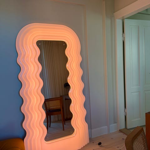 Sælger mit smukke og yderst eftertragtede Ultrafragola-spejl, et ægte designikon fra 1970’erne og et must-have i enhver stilbevidst bolig. Spejlet giver et blødt, atmosfærisk lys og fungerer både som kunstværk og praktisk spejl.