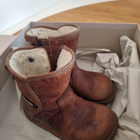Virkelig flotte vinterstøvler fra ANGULUS sælges. Dejlig varme med foer overalt inden i. Lynes i siden, så nemt for barnet at få på.
