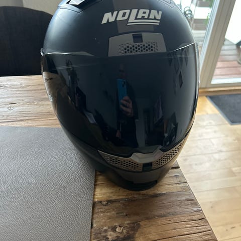 Nex Racing Motorcykelhjelm/knallerthjelm i sort farve. Hjelmen har en klar visir og justerbar strop. Designet til at beskytte hovedet under motorcykelkørsel/knallerthjelm. Der er Bluetooth i den. Materialet er robust og egnet til sikkerhedsanvendelse. Str M
