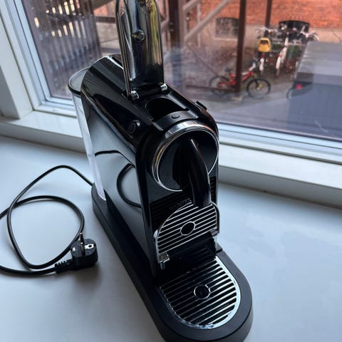 Nespresso Citiz limousine Kaffeautomat i sort farve. Kompakt design med enkel betjening. Velegnet til brygning af espresso og lungo. Indeholder aftagelig vandbeholder og drypbakke. Fremstillet af holdbare materialer. Uåbnet pakke og aldrig brugt.