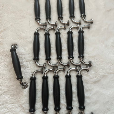 Hvid / råhvidt / porcelænslook forkromet knop og greb fra IKEA serien KLINGSTORP.
