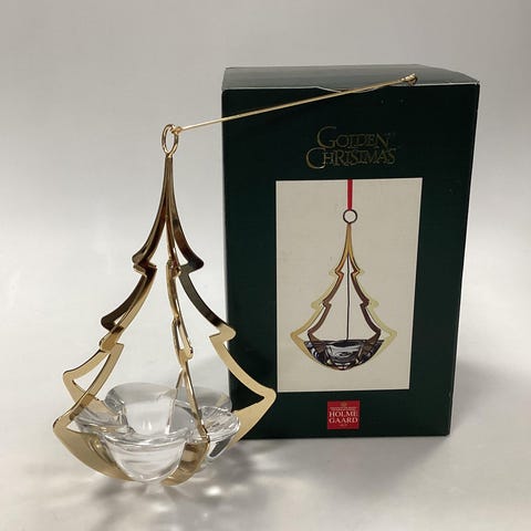 Holmegaard Golden Christmas Fyrfadsstage - Juletræ 2006. I original æske og indhold, inkl. 2 forgyldte metalstænger til ophæng. Perfekt stand.