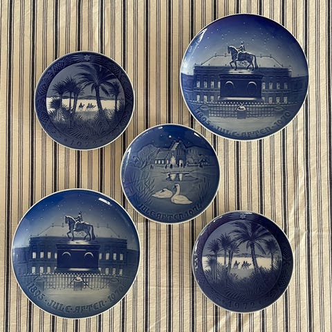 Royal Copenhagen Juleplatte sæt bestående af 3 stk. blå porcelænsplatter med julemotiver. Hver platte er dekoreret med detaljerede vinter- og juletemaer i klassisk blå og hvid farve. Platterne er fra forskellige årstal i 1980'erne og egner sig til samling eller dekoration.