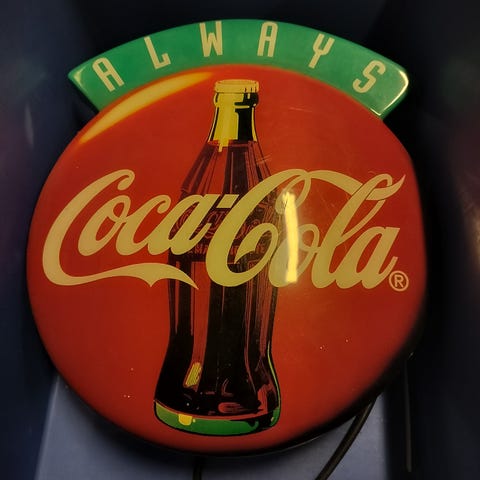 Coca-Cola lysskilt ca Ø60cm sælges.