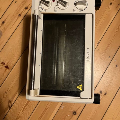Vintage god bordovn fra DeLonghi X19LX Stort Miniovn med en kapacitet på 12,5 liter, fra Italien. Miniovnen har en hvid farve og betjenes via tre røde drejeknapper på fronten. Modellen er klassificeret som 'Andet' type ovn. Effektforbrug ved standby er 0,1 watt, ved 0,5 kWh og 0,6 kWh ved brug. Miniovnen er velegnet til opvarmning og bagning i mindre køkkener eller til supplerende madlavning. Med DIV plader og bakker.