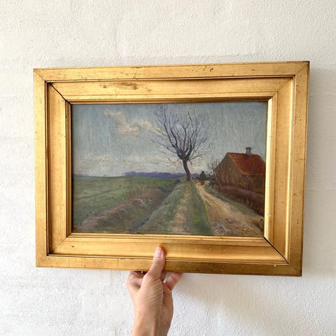 Maleriet har en fin patina og udstråler både historie, charme og kvalitet, perfekt til dig der samler på antikke malerier eller ønsker et unikt dekorativt element i hjemmet.