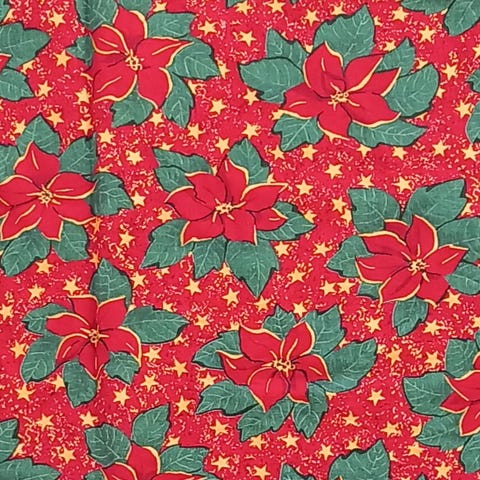 Skøn rød (mørkerød) dug fra 70'erne, har håndlavet tryk af stjerner.