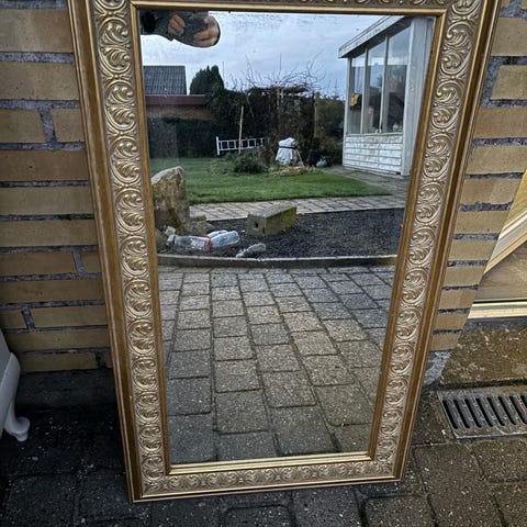 Et smukt lille spejl med guld ramme. En masse skønne detaljer på rammen. I god stand!