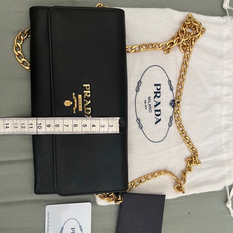 Giv din hverdag et luksuriøst touch med denne elegante Prada Coin Case pung. Kompakt og stilfuld, lavet i førsteklasses materiale med det ikoniske Prada logo. Den perfekte accessory til at holde dine mønter og småting organiseret uden at gå på kompromis med design og kvalitet.