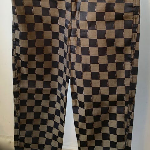 Eksklusiv Fendi kortærmet strik i brun og sort med det ikoniske FF-logo i all-over mønster. Den tætsiddende pasform og bløde, elastiske strikkvalitet giver et elegant og komfortabelt look - Et ægte Fendi-statement, der kombinerer italiensk luksus og grafisk design.
