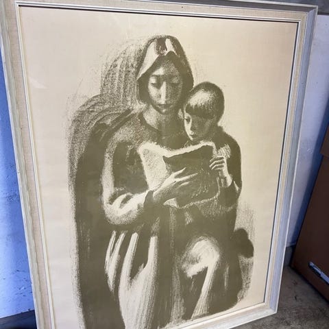 Et flot og stort Sikker Hansen litografi i glas og ramme. I god stand! Af mor og barn. Virkelig sødt og fint.