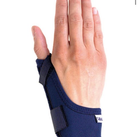 Tommelortose. Skinne til tommelfinger. Håndledsbandage.