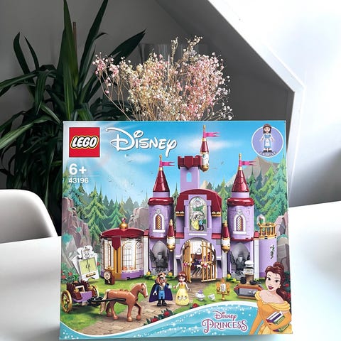 LEGO Disney Princess Aladdin Palads Byggesæt med detaljeret palads, figurer af Aladdin og Jasmine, inkluderer hest og tilbehør. Sættet er designet til børn og indeholder farverige byggeklodser, der skildrer scener fra Disney's Aladdin.
