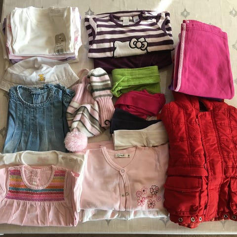 Flyverdragt, vinterjakke, vinterstøvler, bukser, bluser, bodystockingen.