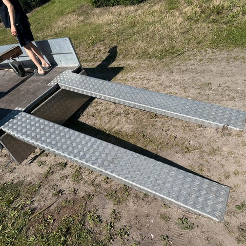 Rampesæt/kørerampe 2 m x 26 cm. Kan tage 1000 kg. Kun brugt een gang