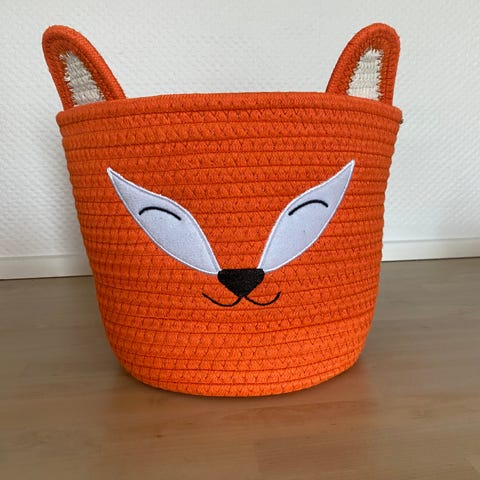 En super fin børnekurv i stof – perfekt til legetøj, bamser eller små ting på børneværelset. Den er let, rummelig og nem for barnet selv at bruge. Står flot i rummet og gør det nemt at holde styr på alle sagerne.