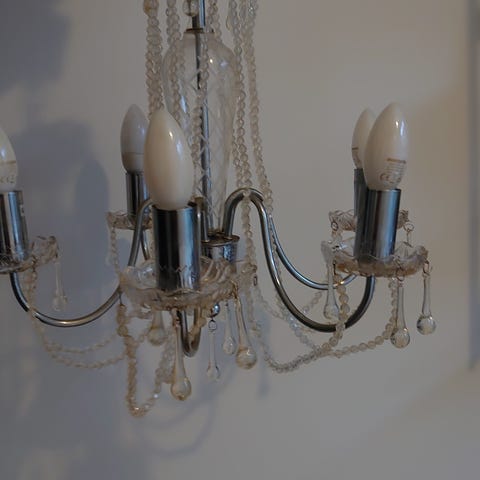 Prisme / messing loftlampe trænger til til en kærlig hånd der er mangler på sideprismerne øverst oppe