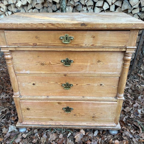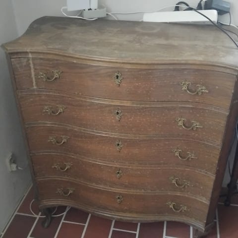 En flot og efterhånden sjælden gammeldags kommode med skrivebord og 3 store skuffer og en masse små👍