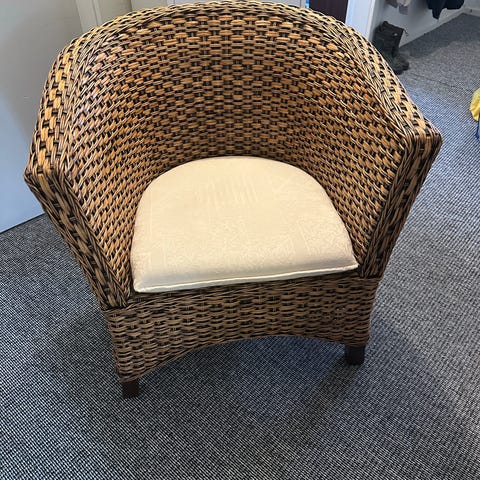 Den har lidt brugsspor, men er stadig en fed stol, som har mange gode år tilbage i sig.