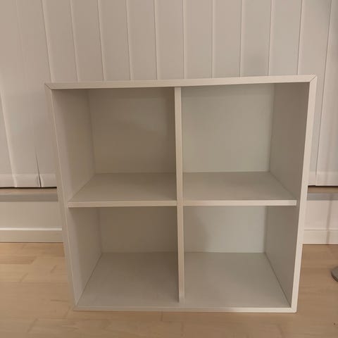 Grå. 4 rum. Ret skrammet og med nogle huller i siden, men har for mig fungeret fint som en del af en større Eket reol.